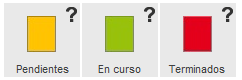 A parte tenemos tres botones de filtrado: . Estos tres botones filtran el estado que queremos cambiar al pinchar en el nombre de la mesa, por ejemplo: Si clicamos en el botón "En Curso" (botón verde) y luego clicamos en el nombre de una mesa, solo cambiarán a "Terminados" (color rojo), los productos que estén en ese estado de "En Cuso" (color verde).